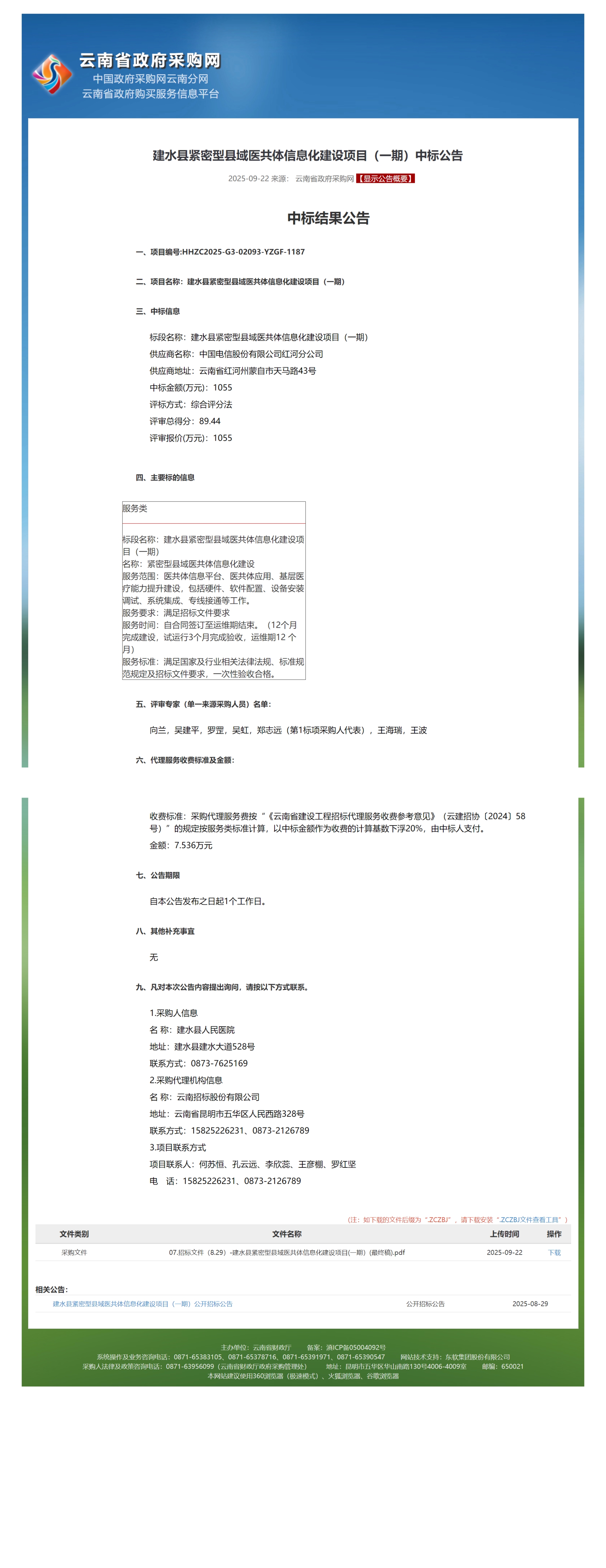 建水县紧密型县域医共体信息化建设项目(一期)中标公告