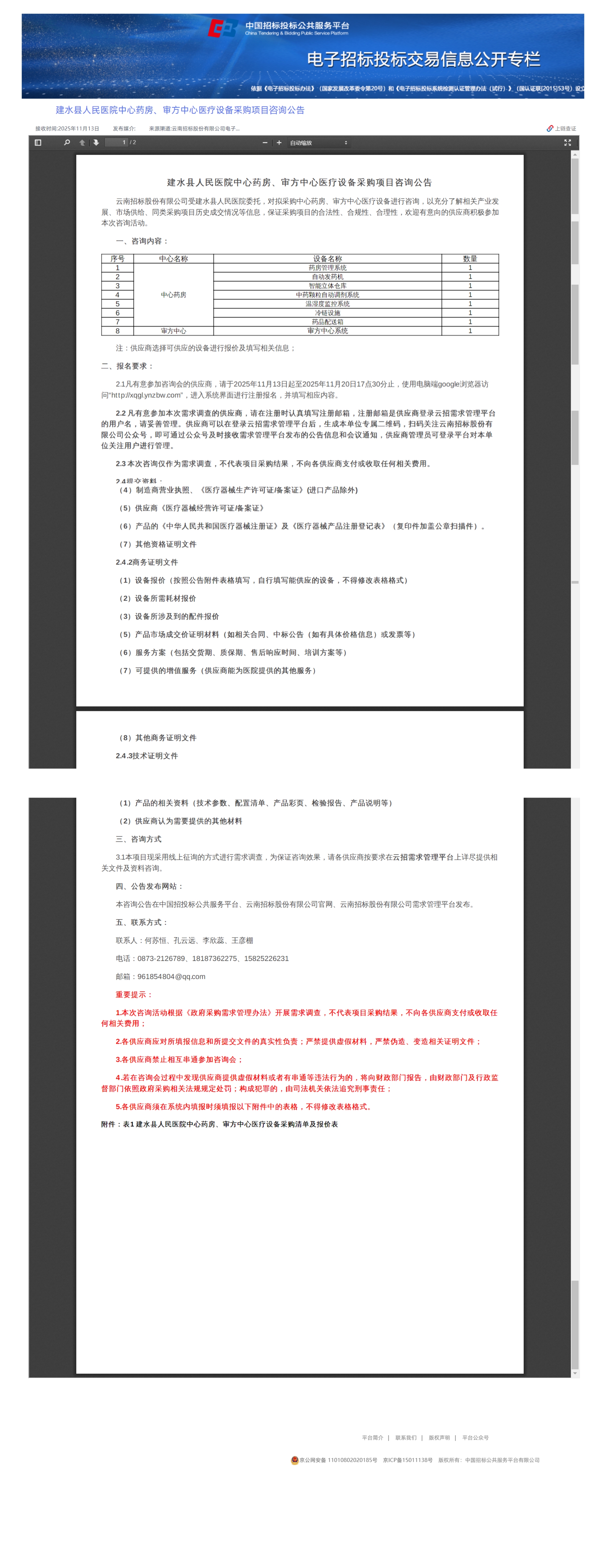 建水县人民医院中心药房、审方中心医疗设备采购项目咨询公告