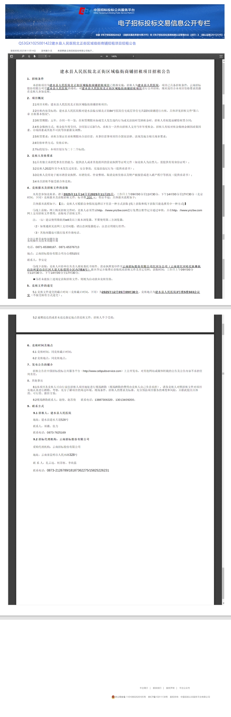 建水县人民医院北正街区域临街商铺招租项目招租公告
