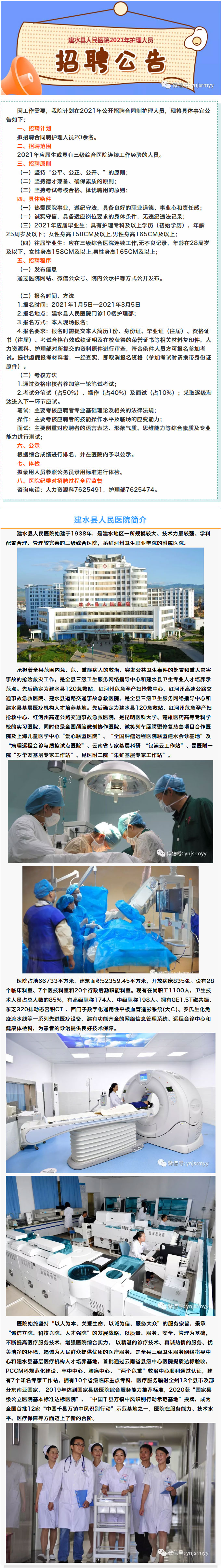建水县人民医院2021年护理人员招聘信息