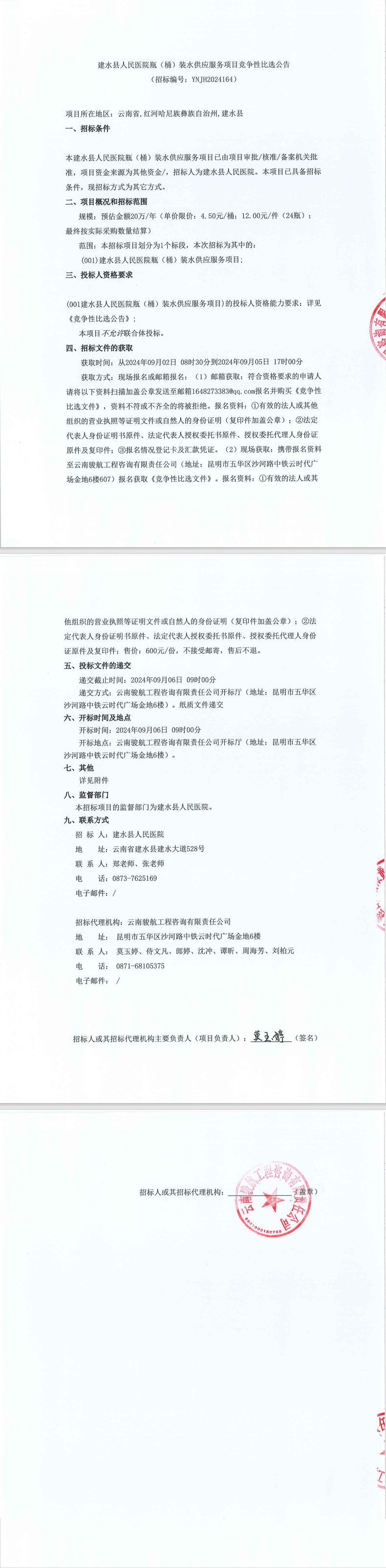 建水县人民医院瓶(桶)装水供应服务项目竞争性比选公告