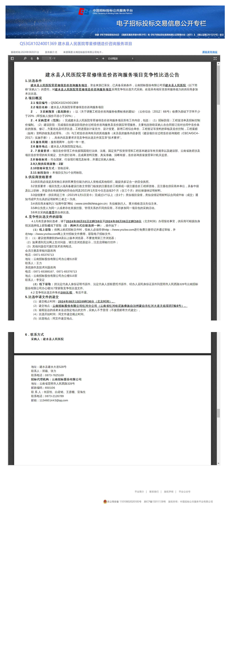 建水县人民医院零星修缮造价咨询服务项目竞争性必选公告