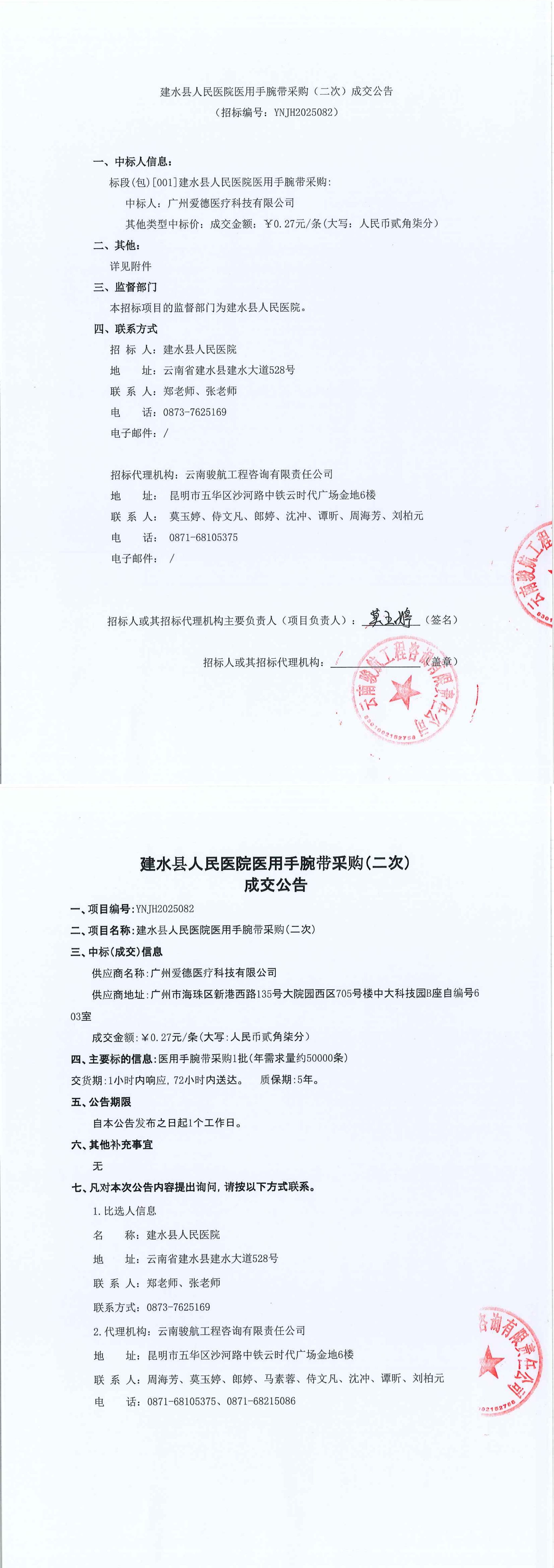 建水县人民医院鼻咽喉吸切手柄单一来源采购项目成交结果公告