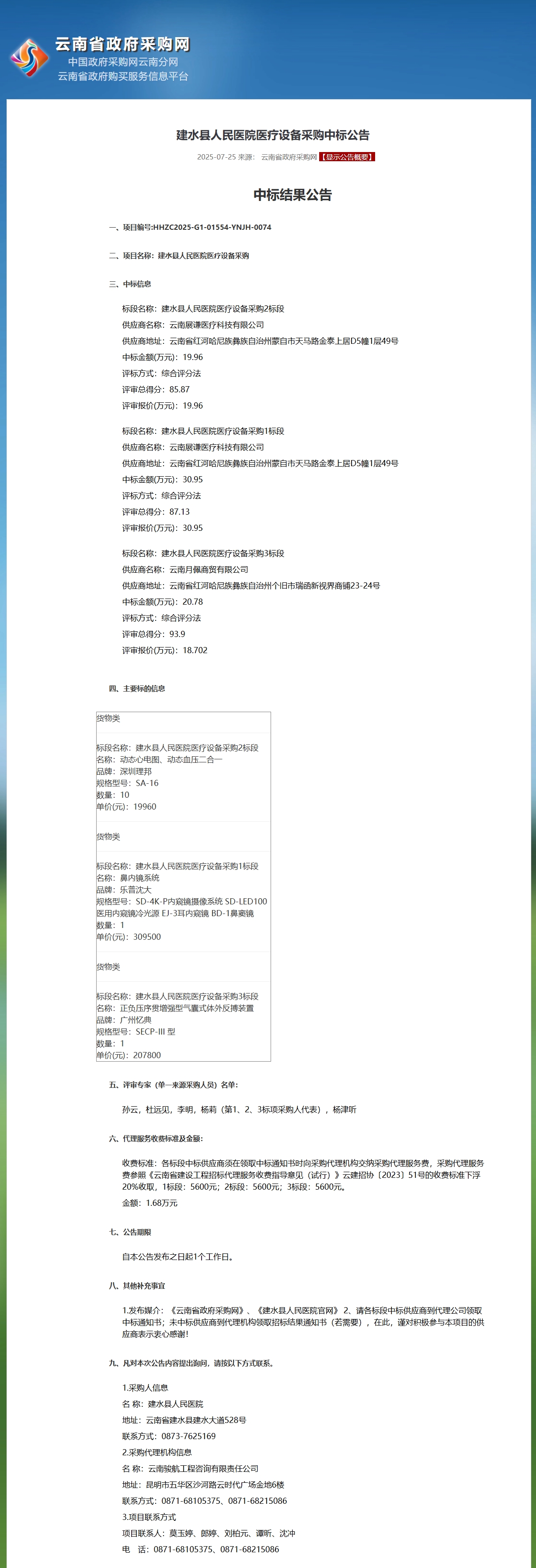 建水县人民医院CT室装修改造项目(二次)成交公告