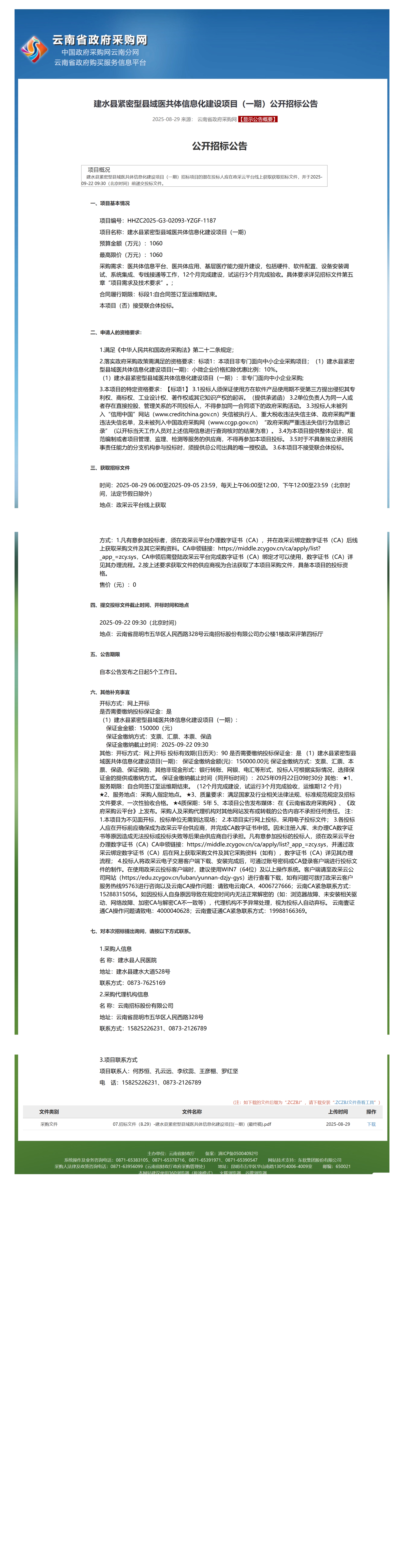 建水县紧密型县域医共体信息化建设项目(一期)公开招标公告