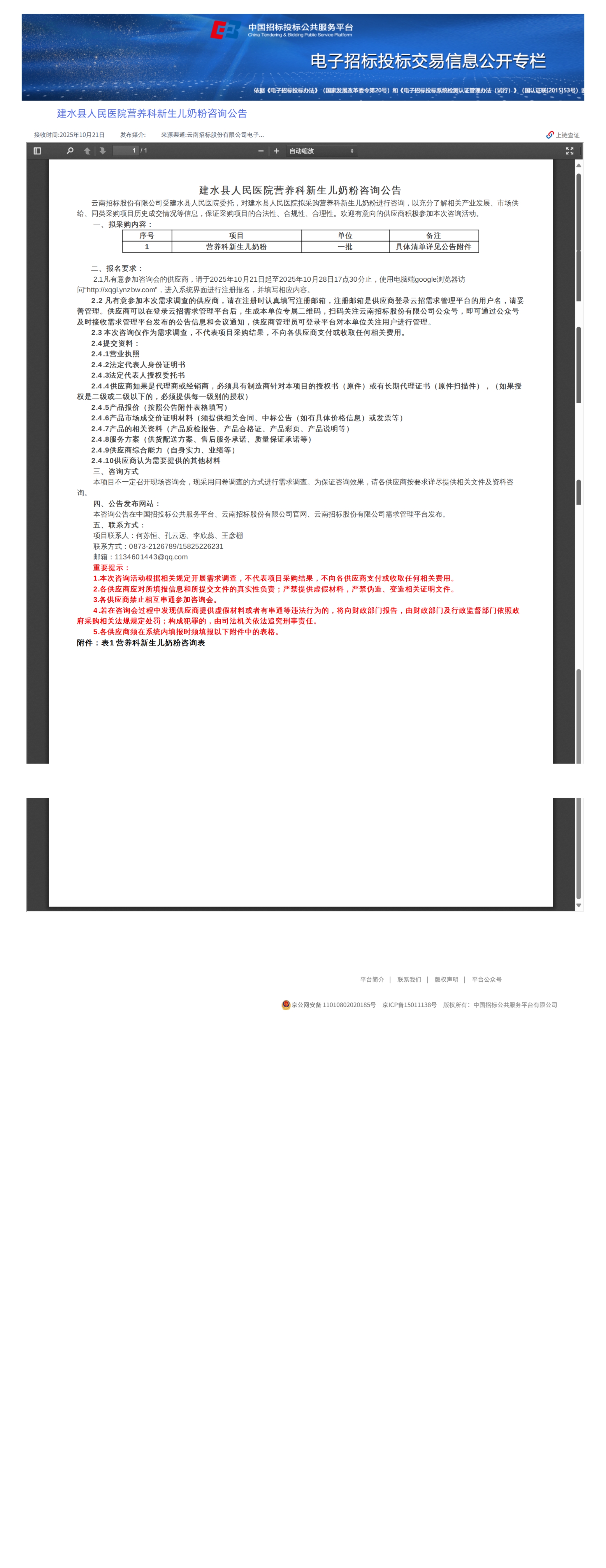 建水县人民医院营养科制剂(成品类)咨询公告