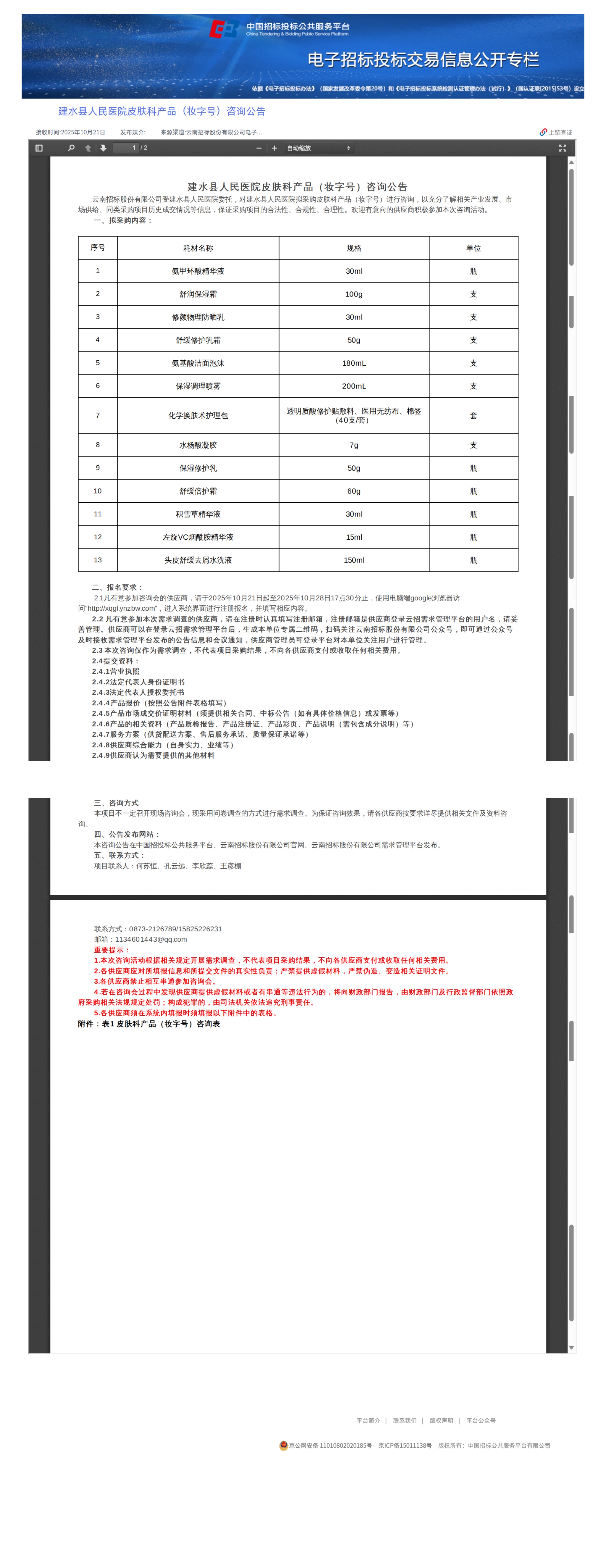 建水县人民医院皮肤科产品(妆字号)咨询公告