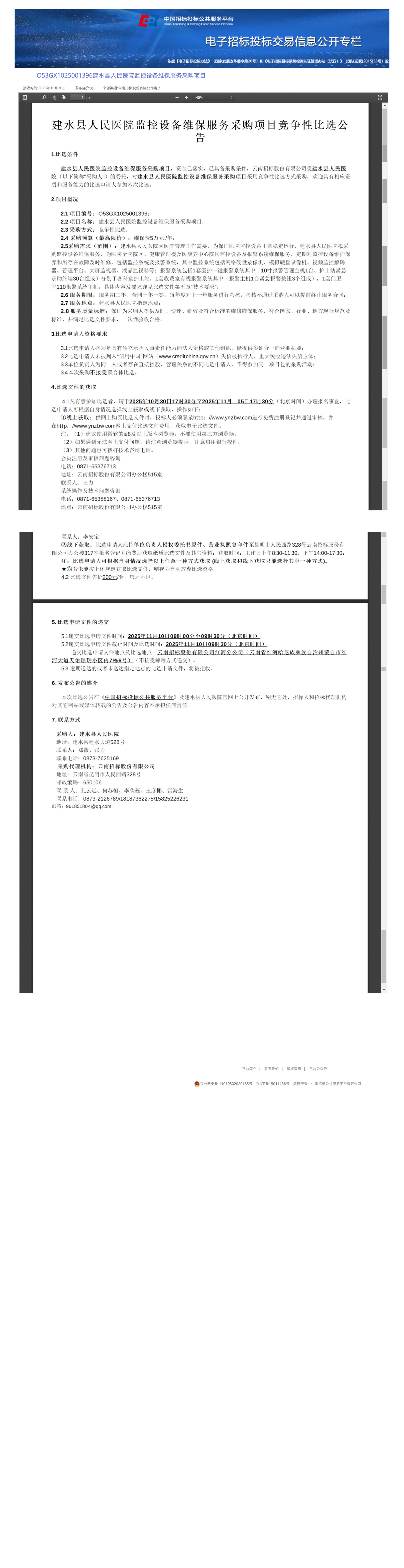 建水县人民医院监控设备维保服务采购项目竞争性比选公告
