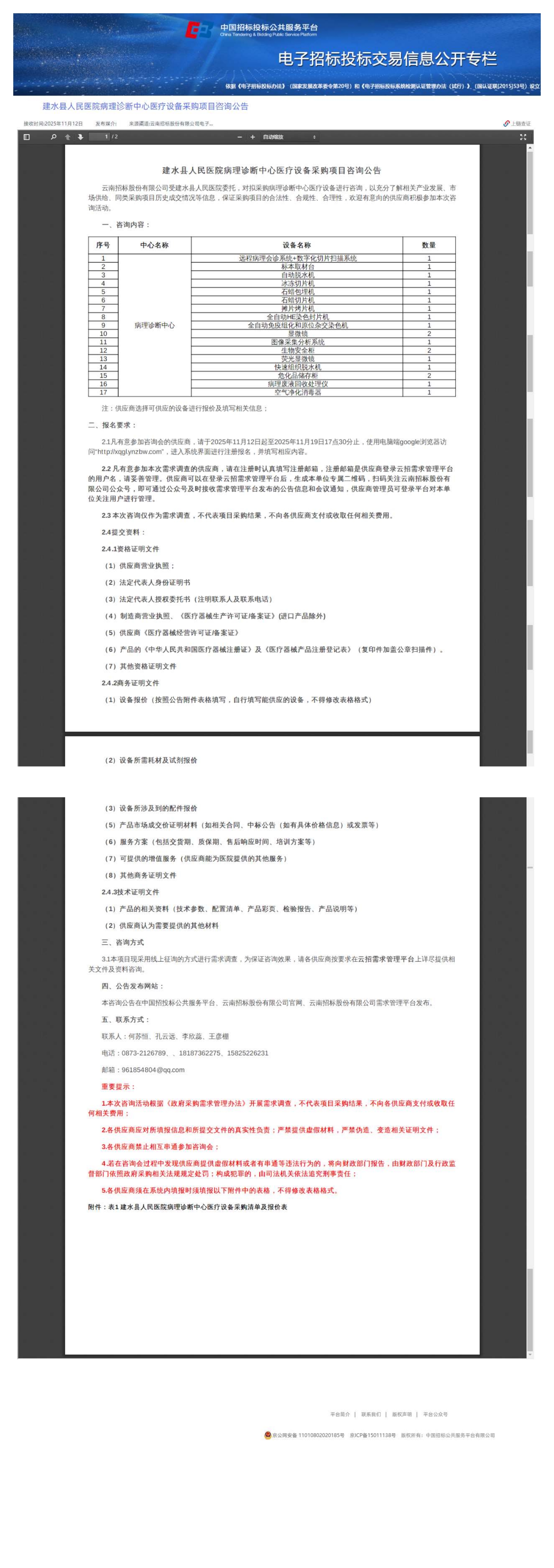 建水县人民医院病理诊断中心医疗设备采购项目咨询公告