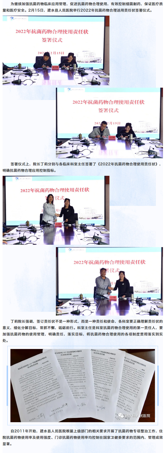 加强抗菌药物管理,提高用药安全——建水县人民医院与各临床科室签署2022年抗菌药物合理使用责任状