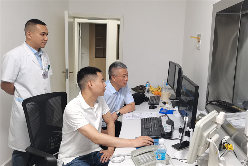 会后,云南省医学影像科专科联盟专家组到建水县人民医院医学影像科对医院CT、MRI室现有影像检查设备、诊疗环境、开展检查项目进行了解,并与医务人员进行交流,就医学影像技术的最新进展、应用实践以及未来发展方向开展深入探讨及技术指导。